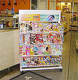 A panificadora Panetone está localizada em uma rua de grande movimento no Bairro da Velha, em Blumenau (SC), e chama a atenção por sua organização e beleza. Atento às oportunidades, o promotor de vendas Evandro Pereira partiu para a negociação e instalou ali um expositor com os principais títulos distribuídos pela Dinap. O ponto alternativo foi inaugurado em agosto e está se revelando uma aposta certeira, com média de vendas de R$ 1.200,00 por mês. Na linha de frente estão as revistas semanais e mensais da Editora Abril.