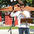 Mário realiza a primeira troca do evento, com o filho do prefeito
