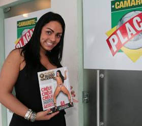 A Garota Melancia divulgou a edição no camarote da Placar no Maracanã