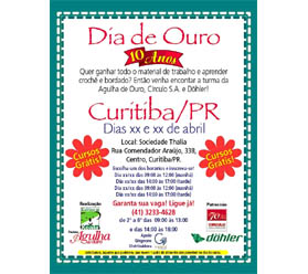 A Agulha de Ouro estampou, na edição de março, o convite do evento, atraindo ainda mais os leitores. Além disso, emissoras de rádio e TV locais divulgaram o Dia de Ouro. "Também tivemos grande quantidade de participantes que se inscreveram indicadas por amigas, leitoras da revistas e lojas de armarinhos", conta Maurina. Durante o período de inscrições, houve quase 500 inserções divulgando o curso na imprensa.