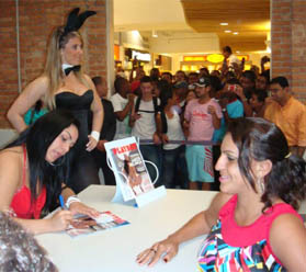 Playboy e a Dinap realizaram sessões de autógrafos em São Paulo (SP) e no Rio de Janeiro (RJ). Todos os eventos contaram com a presença modelos vestidas de coelhinhas e divulgação por meio de banners, totens e CDs da musa do funk. Confira os resultados de cada ação!