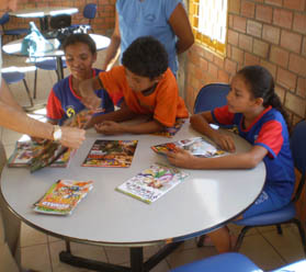 Crianças não perderam tempo e aproveitaram para conhecer as publicações