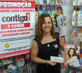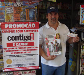 A Agência da Dinap no Rio de Janeiro (RJ) está investindo para aumentar as vendas de Contigo!. Para isso, criou uma série de ações promocionais em parceria com empresas e pontos-de-venda da região. Uma delas foi com o Instituto de Beleza Embelezze, que já garantiu um aumento médio de 80% nas vendas da revista nos 120 PDVs participantes.