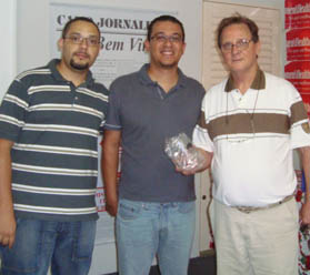 Os consultores William e Douglas (à esq.) entregaram brindes para os jornaleiros