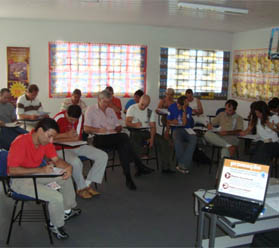 Durante o treinamento, jornaleiros participaram fazendo perguntas e exercícios