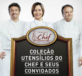 Com a qualidade Tramontina e patrocínio da Petybon, a coleção semanal conta com facas, conchas, frigideira e muito mais, além de uma campanha protagonizada por três chefs renomados: a brasileira Carla Pernambuco e os franceses Erick Jacquin e Emmanuel Bassoleil (foto ao lado). "O interesse das pessoas por gastronomia está aumentando e chegamos antes com essa coleção, reunindo um tema atual com chefs famosos e o charme que só