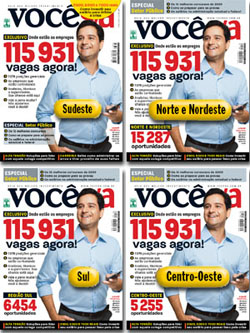 Para atrair ainda mais os leitores, a edição terá quatro capas regionais, que destacarão o número de vagas nas regiões Norte e Nordeste, Sul e Centro-Oeste. "Historicamente, é uma edição muito forte. E a revista vem ao encontro do atual momento do mercado", garante Calu, gerente de circulação avulsas. O destaque da capa Sudeste é o especial sobre o setor público, com os 15 melhores concursos, salários e dicas para se preparar para as provas, além de sugestões de investimentos para driblar a crise. A revista também apresenta soluções para lidar com colegas competitivos e para administrar os erros e tirar proveito das falhas. O conteúdo da edição será o mesmo para todas as regiões.