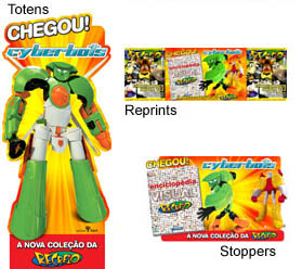 Cyberbots. Os pontos de venda receberão reprints, strips, stoppers de teto e totens gigantes. Além disso, a primeira edição virá em sacolas e cartelas, que devem ser aproveitadas para expor a publicação com destaque e pode até ser pendurada no teto da banca, funcionando como um móbile. "Como a primeira edição recebe todo o impacto da divulgação na mídia, é importante que ela esteja bem exposta na banca, porque é a partir daí que os colecionadores começam a comprar", afirma Maria Helena. Segundo ela, as vendas da revista com a coleção