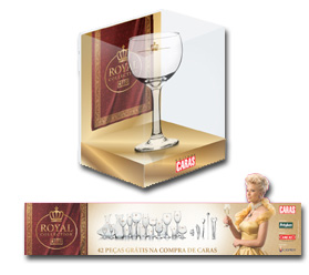 A partir de 20 de janeiro, os pontos de venda de todo o país receberão todo o charme da realeza por meio da nova coleção de Caras. Royal Collection é formada por 42 peças, incluindo copos, taças e decanters de vidro com acabamento em ouro em pó, pegador de gelo, saca-rolhas, colher de refresco, colher de coquetel, dosador e um livro de receitas de drinks.