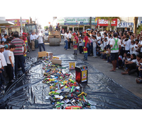 A campanha teve o apoio da prefeitura da cidade e da rede de farmácias Santa Fé, que produziu uma revista em quadrinhos sobre a importância do desarmamento e sobre o hábito da leitura. O encerramento contou com a destruição das arminhas arrecadadas e a participação de professores, alunos, representantes da prefeitura e grupos de dança locais.