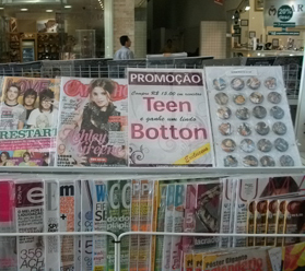 Os jornaleiros Carlos e Norma Sakamoto, de São Paulo (SP), lançaram, recentemente, uma promoção na revistaria que administram desde o ano passado. O cliente que comprar 15 reais em revistas teen ganha um botton dos personagens da saga Crepúsculo. "Queríamos presentear os nossos clientes de alguma forma, e a minha esposa teve a ideia de utilizar os bottons, que já vendíamos. Fizemos a ação no lançamento do filme Lua Nova e estamos repetindo com Eclipse", explica Carlos. Segundo ele, a ação terminará quando os 5 mil bottons, utilizados tanto para a venda quanto para a promoção, acabarem.