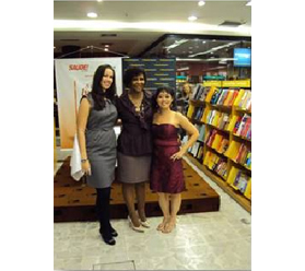 Na última quinta-feira (29/7), as nutricionistas Glorimar Rosa, Sofia Kimi Uehara e Wânia Lúcia Araújo Monteiro autografaram o livro A Dieta da Linhaça, que leva a marca da revista Saúde!É Vital. O evento aconteceu na livraria Saraiva do Shopping Rio Sul, no Rio de Janeiro (RJ), e reuniu aproximadamente 100 pessoas. Nas duas horas em que durou a sessão, os exemplares foram expostos nos check-outs e em outras áreas nobres da loja, gerando maior visibilidade e a venda de mais de 70 exemplares.